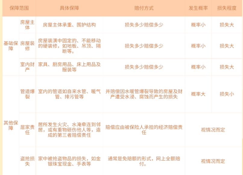 ,能保障火灾、爆炸、台风等意外对房子造成重大损失,
